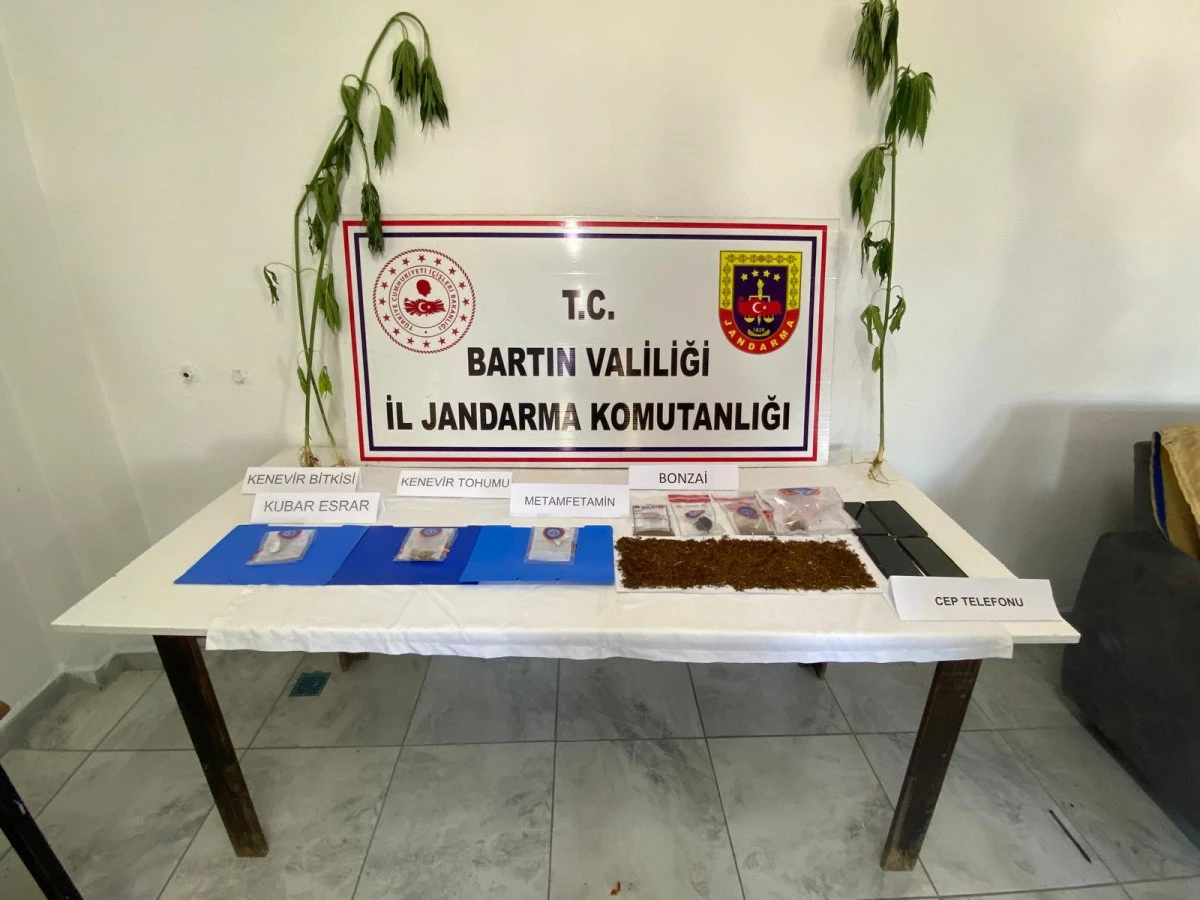 Bartın, Zonguldak, İstanbul illerinde, Bartın Jandarma Komutanlığı ekipleri tarafından şafak vakti eş zamanlı operasyon yapıldı. Operasyonlarda 4 kişi gözaltına alınırken, şahısların üzerinde ve ikametlerinde gerçekleştirilen aramalarda ise 42 gram bonzai, 1 gram metamfetamin, 1 gram kubar esrar, 4 gram kenevir tohumu, 3 kök kenevir bitkisi, 3 adet kuru sıkı tabanca, 117 adet 9 mm tabanca fişeği, 22 adet 7,65 mm tabanca fişeği, 1 adet bandrolsüz viski, 2 adet bandrolsüz votka, 1 adet kılıç, 1 adet elektronik sigara, 4 adet cep telefonu, suçtan elde edildiği değerlendirilen 54 bin 500 TL nakit para ele geçirildi.