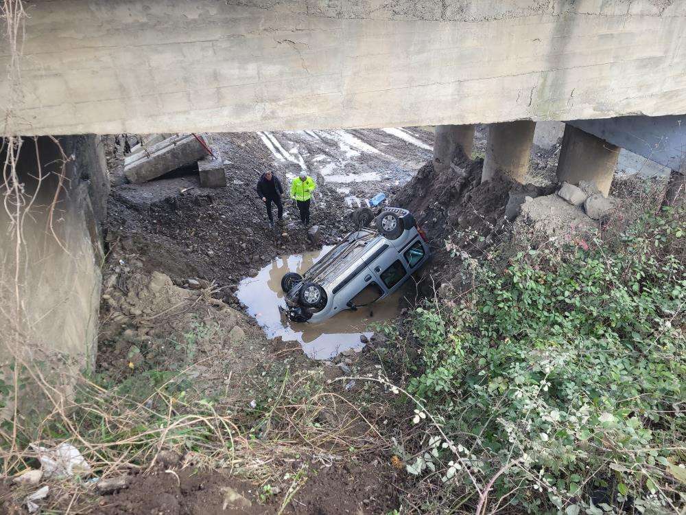 Hafif ticari araç 8 metre yükseklikten çaya uçtu: 3 yaralı