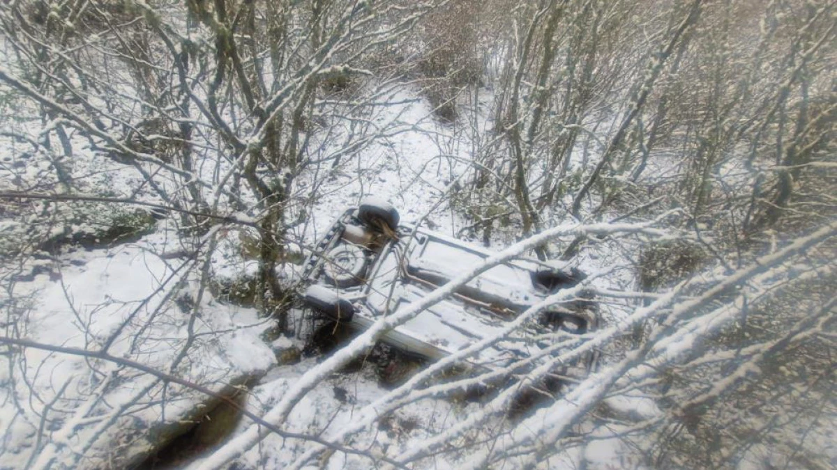 Kastamonu’nun Hanönü ilçesinde buzlanan yoldan çıkarak yaklaşık 20 metrelik şarampole yuvarlanan hafif ticari aracın sürücüsü yara almadan kurtuldu.
