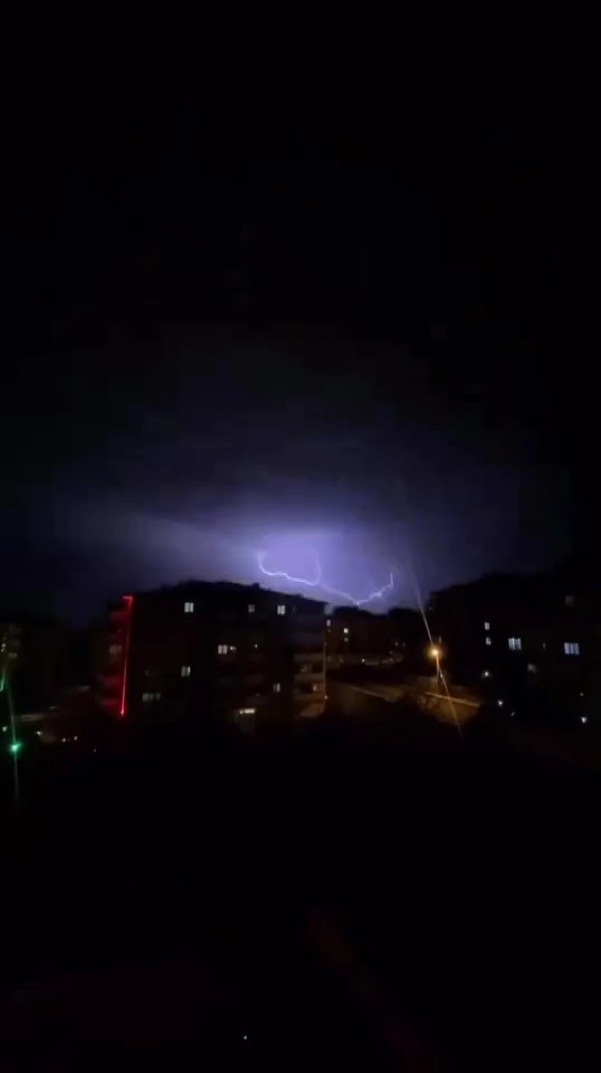 Karabük'te akşam saatlerinde başlayan gök gürültülü sağanak yağmur öncesinde oluşan şimşekler adeta görsel şölen oluşturdu. O anlar vatandaşlar tarafından cep telefonlarıyla görüntülendi.