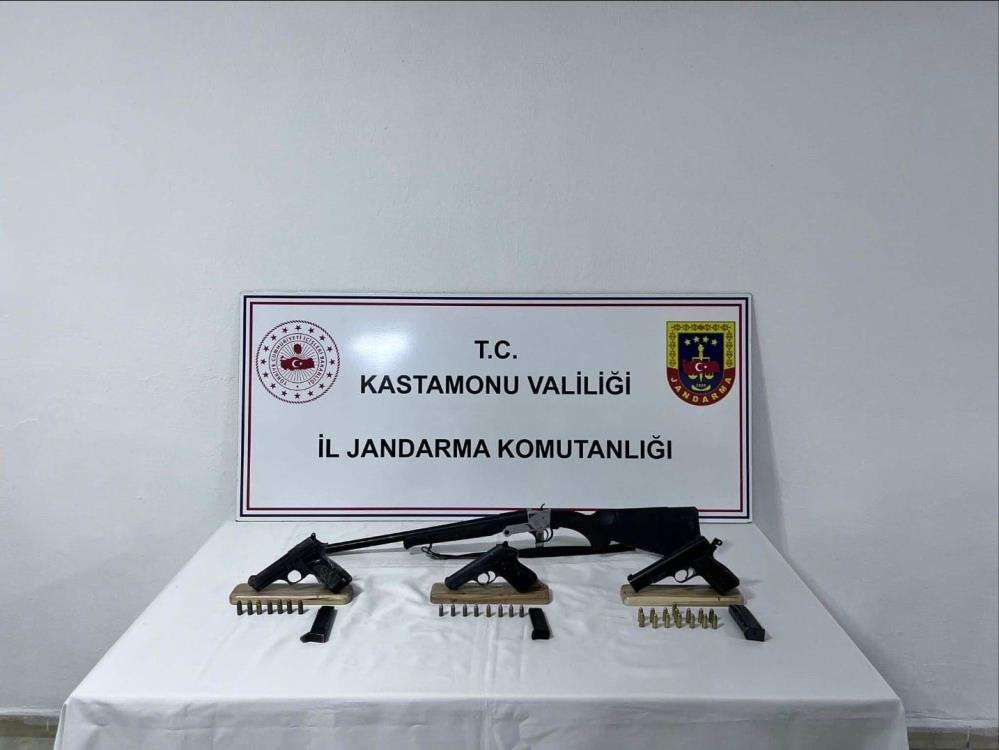 Edinilen bilgiye göre, Kastamonu İl Jandarma Komutanlığı ekipleri tarafından Taşköprü ilçesinde şüpheli şahısların üst ve ikametlerinde arama yapıldı. Yapılan aramada 4 adet ruhsatsız tabanca, 5 adet ruhsatsız av tüfeği ve tabanca fişeği ele geçirildi. Jandarma ekiplerince olayla ilgili bir şahıs gözaltına alındı.