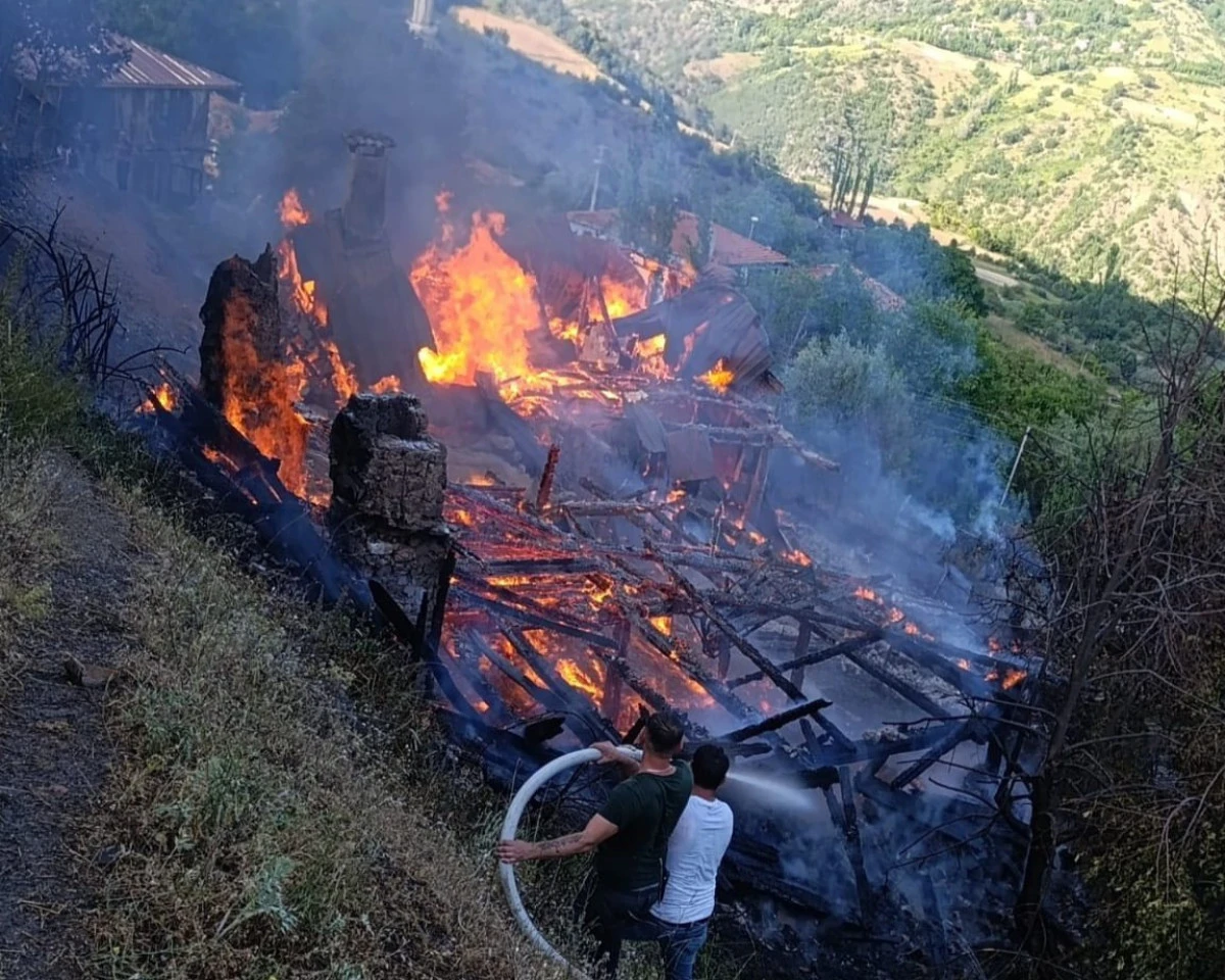 Çankırı'nın Bayramören ilçesinde çıkan yangında 2 ev kullanılamaz hale geldi.