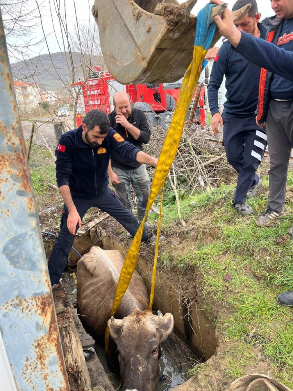 Kuyuya düşen ineği itfaiye kurtardı