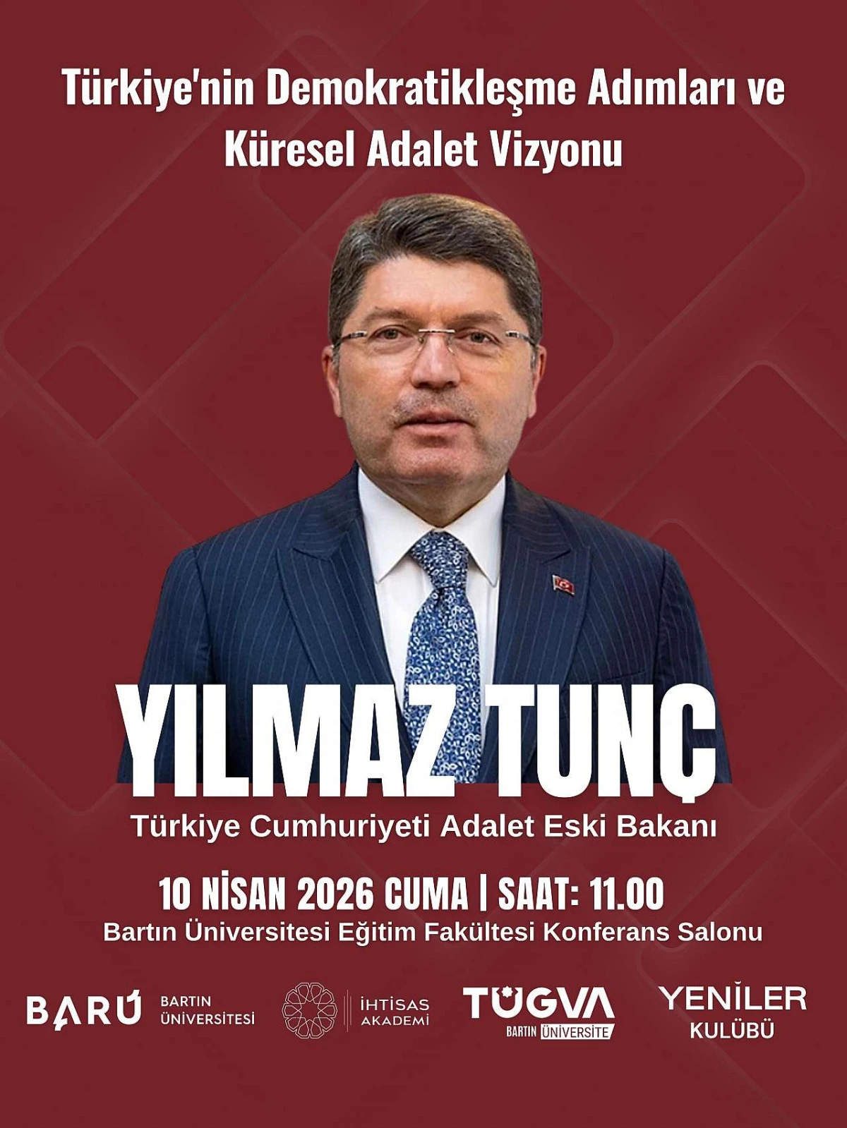 Önceki dönem Adalet Bakanı Yılmaz Tunç 10 Nisan 2026 Cuma günü Bartın'da bir dizi programa katılacak